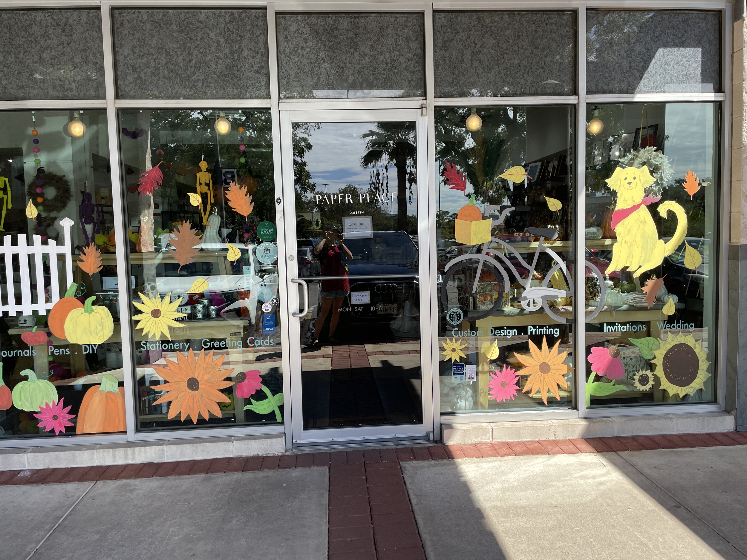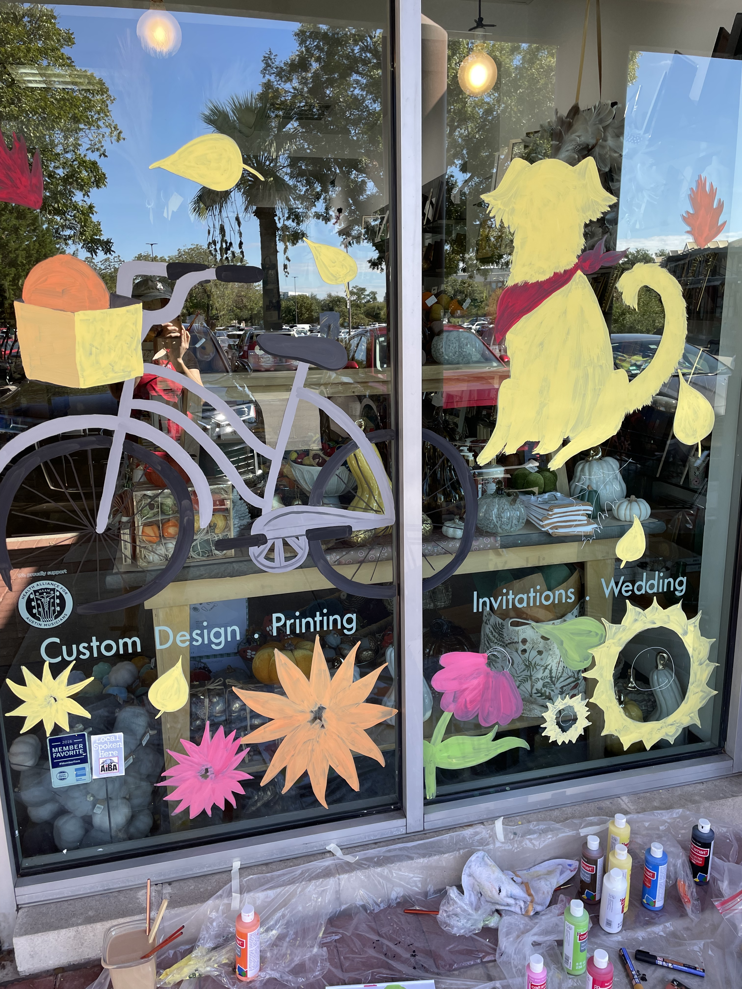 I was hired to make a fall mural for Paper Place. They wanted fall elements mixed with floral embellishments.