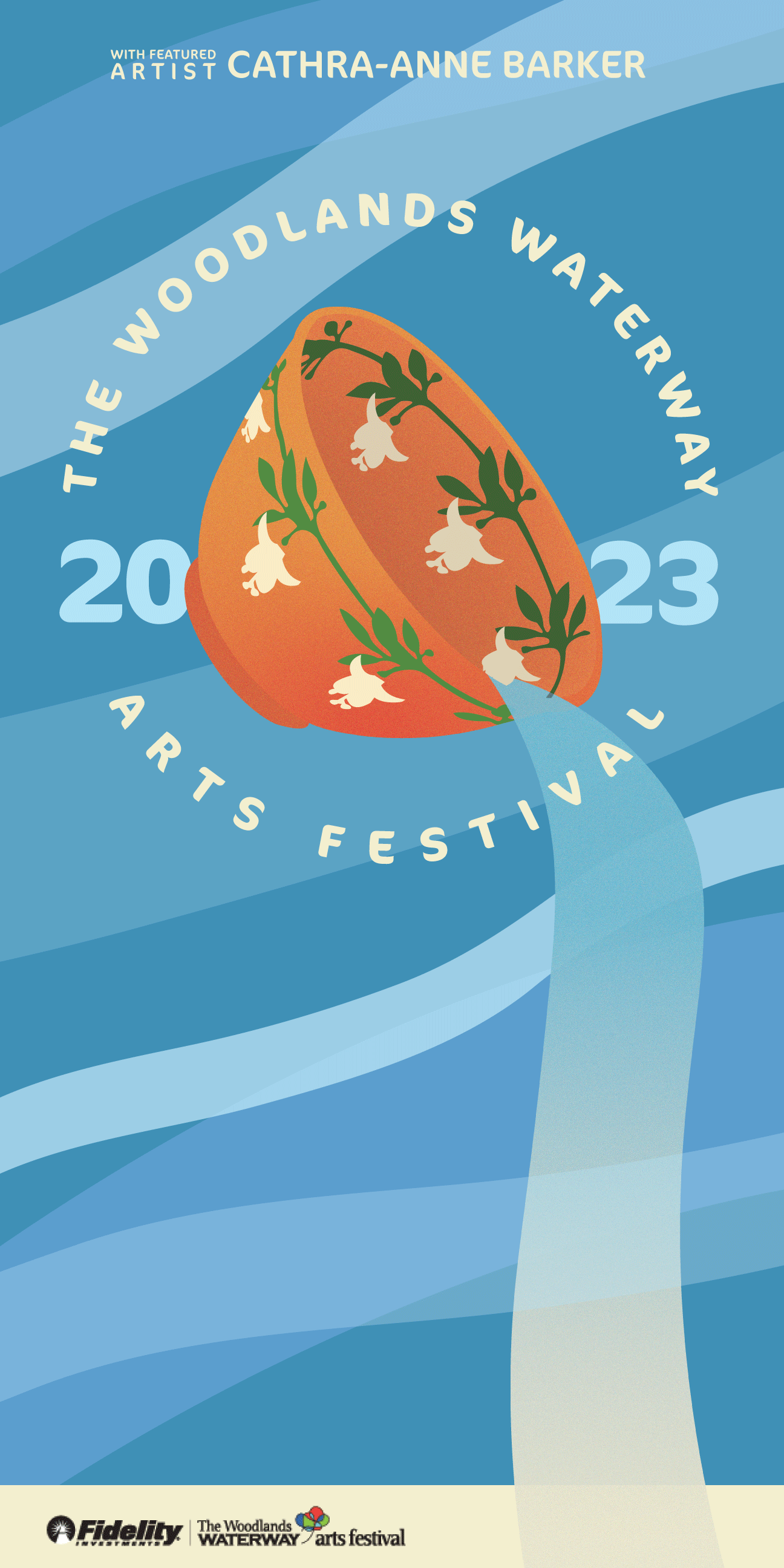 The Woodlands Arts Festival takes place every Spring, and each year the council selects a specific artwork from an artist to represent the marketing for that year. This year the artist was Cathra-Anne Barker and the ceramic piece was called “Turtle Pond.” I digitally recreated her vases and used other assets from her artwork to inform the marking for the event.