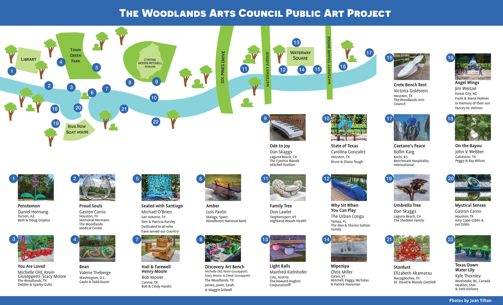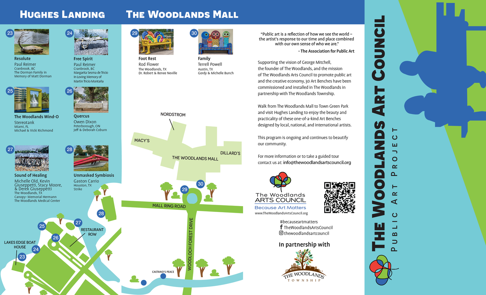 This brochure was separate from the Arts Festival. There was a new art installation to The Woodlands waterway, and they wanted a map of all the locations for each of the artistic benches.